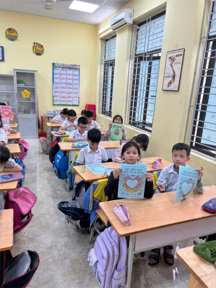 Các bạn học sinh lớp 3A vô cùng hào hứng khi được tham gia hoạt động trang trí tiệp với chủ đề “Gửi người phụ nữ con yêu”. Dưới sự hướng dẫn của cô giáo, các em đã tự tay trang trí những tấm thiệp xinh xắn với nhiều màu sắc rực rỡ. Mỗi tấm thiệp là một món quà nhỏ nhưng chứa đựng tình cảm chân thành, ngây thơ và đáng yêu của các em dành cho bà, cho mẹ và cho cô giáo của mình. Những dòng chữ tuy còn đơn sơ nhưng chứa đựng biết bao tình cảm trong sáng của tuổi học trò. Hoạt động không chỉ giúp các em rèn luyện sự khéo léo, sáng tạo mà còn giáo dục các em biết yêu thương, trân trọng và biết ơn, thêm tôn trọng những người phụ nữ xung quanh mình.