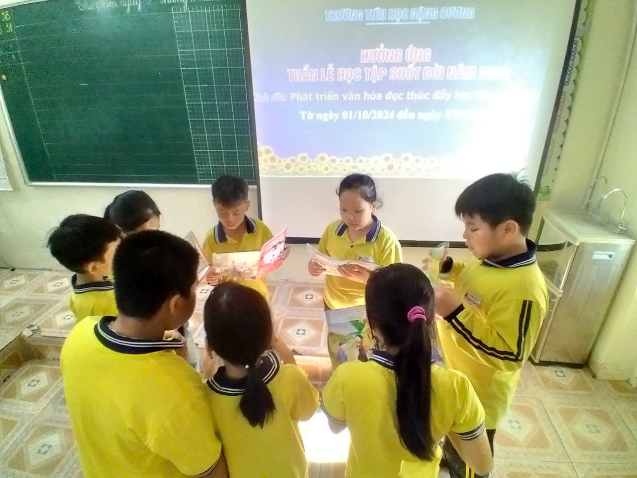 Nhằm phát huy truyền thống “hiếu học” của dân tộc và hướng tới một xã hội học tập, Tuần lễ Học tập suốt đời năm 2024 với chủ đề "Phát triển văn hóa đọc thúc đẩy học tập suốt đời" đã và đang diễn ra rộng khắp.Các bạn lớp 3B Trường Tiểu học Đặng Cương đã hưởng ứng “tuần lễ học tập suốt đời” .Đây là dịp để các bạn học sinh cùng nhau nhìn lại tầm quan trọng của việc đọc sách, đồng thời khơi dậy niềm đam mê đọc sách trong mỗi bạn học sinh.