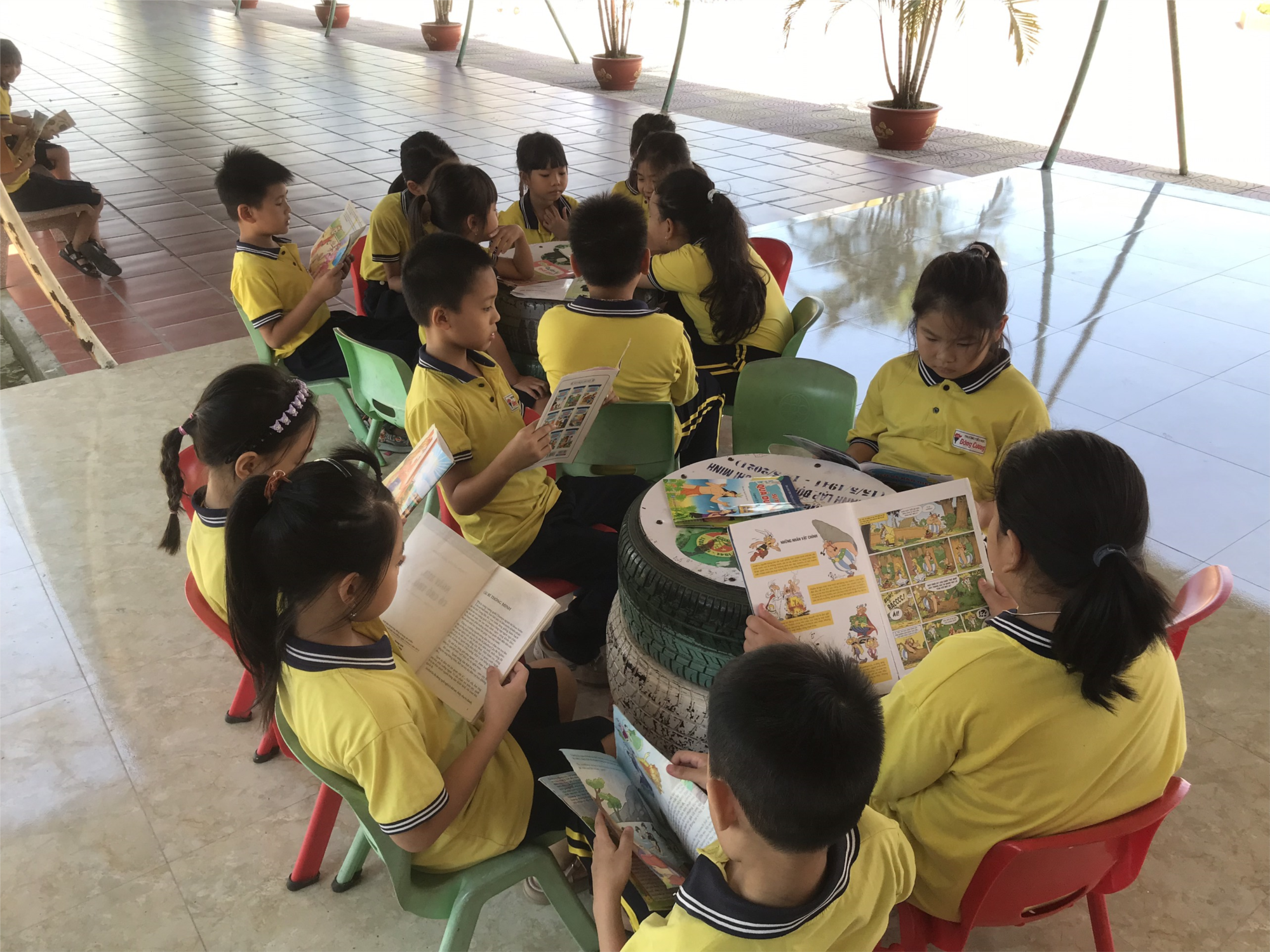 Một số hình ảnh của các bạn học sinh lớp 3D trong giờ Đọc thư viện: