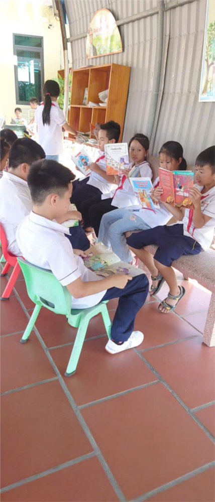 Hiểu được vai trò của “ phát triển văn hoá đọc”, cô Nguyễn Thị Liên - Giáo chủ nhiệm lớp 4B- Trường Tiểu học Đặng Cương đã tổ chức cho các em hoạt động đọc tai Thư viện xanh của nhà trường. Đến với Thư viện xanh, các em được thoả sức chọn lựa những cuốn sách hay, hấp dẫn, ngồi đọc, chia sẻ tại khu nhà vòm thoáng mát, thân thiện với thiên nhiên.