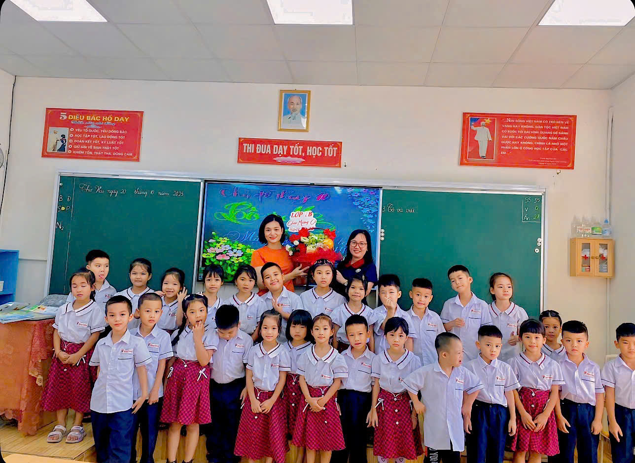 Không khí ngày 20/10 càng thêm ấm áp khi các bậc phụ huynh khối 1 cùng chung tay tổ chức, tặng hoa và những món quà tươi đẹp gửi đến các cô giáo như lời tri ân sâu sắc. Những bó hoa rực rỡ, những nụ cười thân thương đã mang đến niềm vui và động lực lớn cho các cô trong sự nghiệp trồng người.