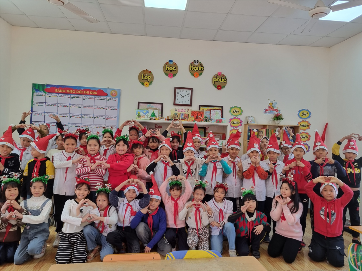 Hòa chung không khí Noel tưng bưng, ấm áp trên toàn thế giới, Chi hội phụ huynh cùng cô giáo chủ nhiệm các lớp đã tổ chức Lễ Giáng sinh cho các con. Trong không khí se lạnh của mùa đông, các con học sinh khoác lên mình những trang phục mừng ngày Giáng sinh trông thật đáng yêu và ấm áp. Ông già Noel đã ghé thăm từng lớp học để trao những món quà xinh xắn đến tay các bạn nhỏ. Được nhận quà từ ông già Noel đáng mến, các bạn nhỏ đều tỏ ra phấn khích và sung sướng. Cô Hiệu trưởng và ông già Noel gửi lời chúc tốt đẹp tới các em học sinh. Chúc quý thầy cô và các em một mùa Giáng sinh vui vẻ, an lành và ấm áp, hạnh phúc bên những người thân yêu.