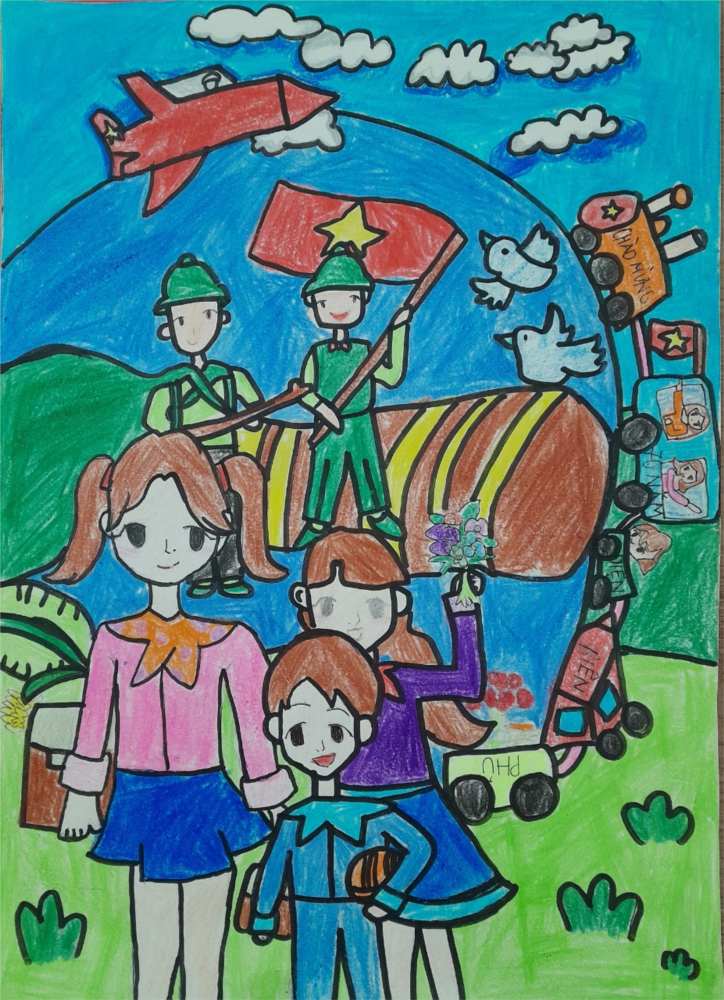 Qua những nét vẽ các em học sinh trường Tiểu học Đặng Cương thể hiện tình yếu quê hương, đất nước, sự khâm phục, lòng biết ơn, sự tự hào về một thế hệ anh hùng với những chiến thắng oanh liệt đánh dấu cột mốc vàng trong lịch sử dân tộc, "lừng lẫy năm châu, chấn động địa cầu"!
