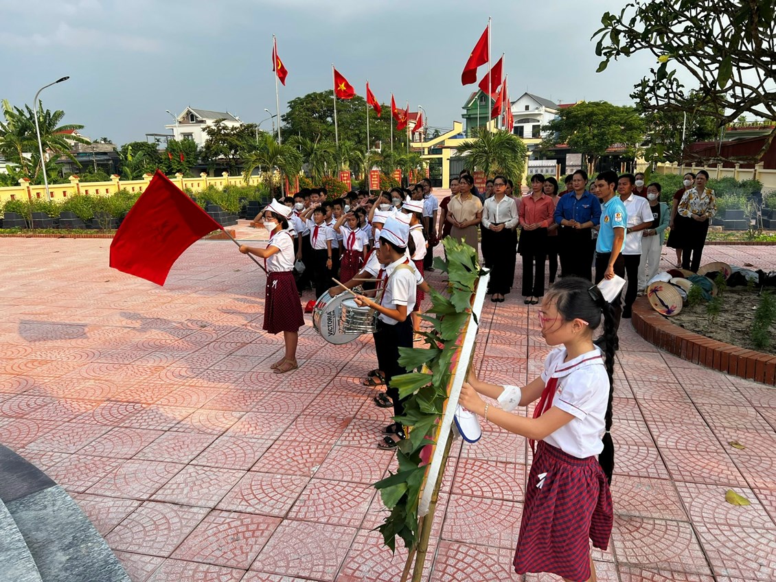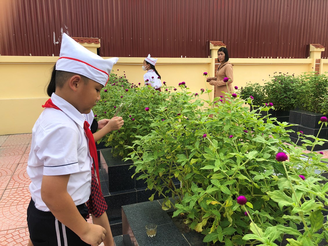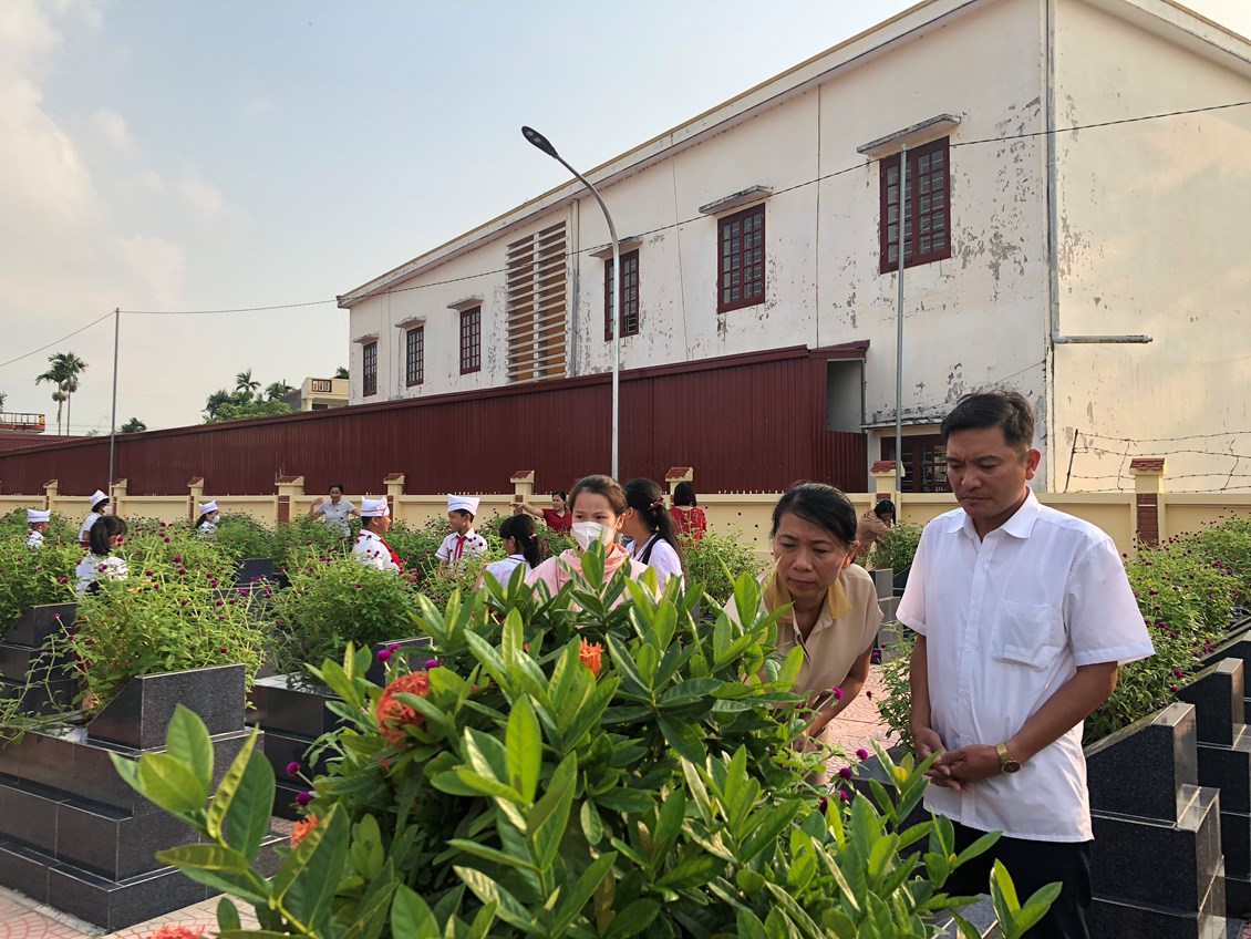 Dẫn đầu đoàn lễ viếng là cô giáo Bùi Thị Hải Yến - Bí thư chi bộ - Hiệu trưởng nhà trường. Cùng các thầy giáo, cô cô giáo đại diện các ban ngành đoàn thể trong nhà trường và các em Đội viên tiêu biểu của Liên đội tham gia hoạt động.