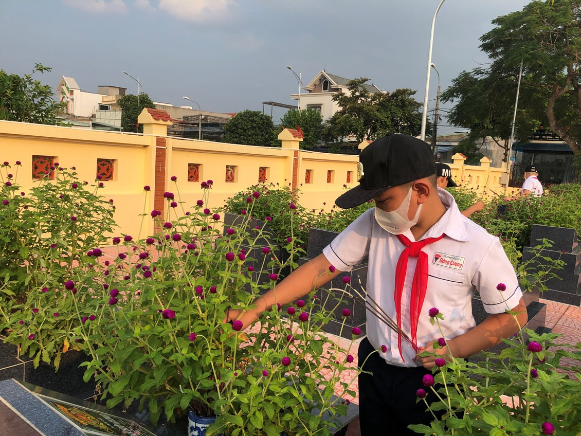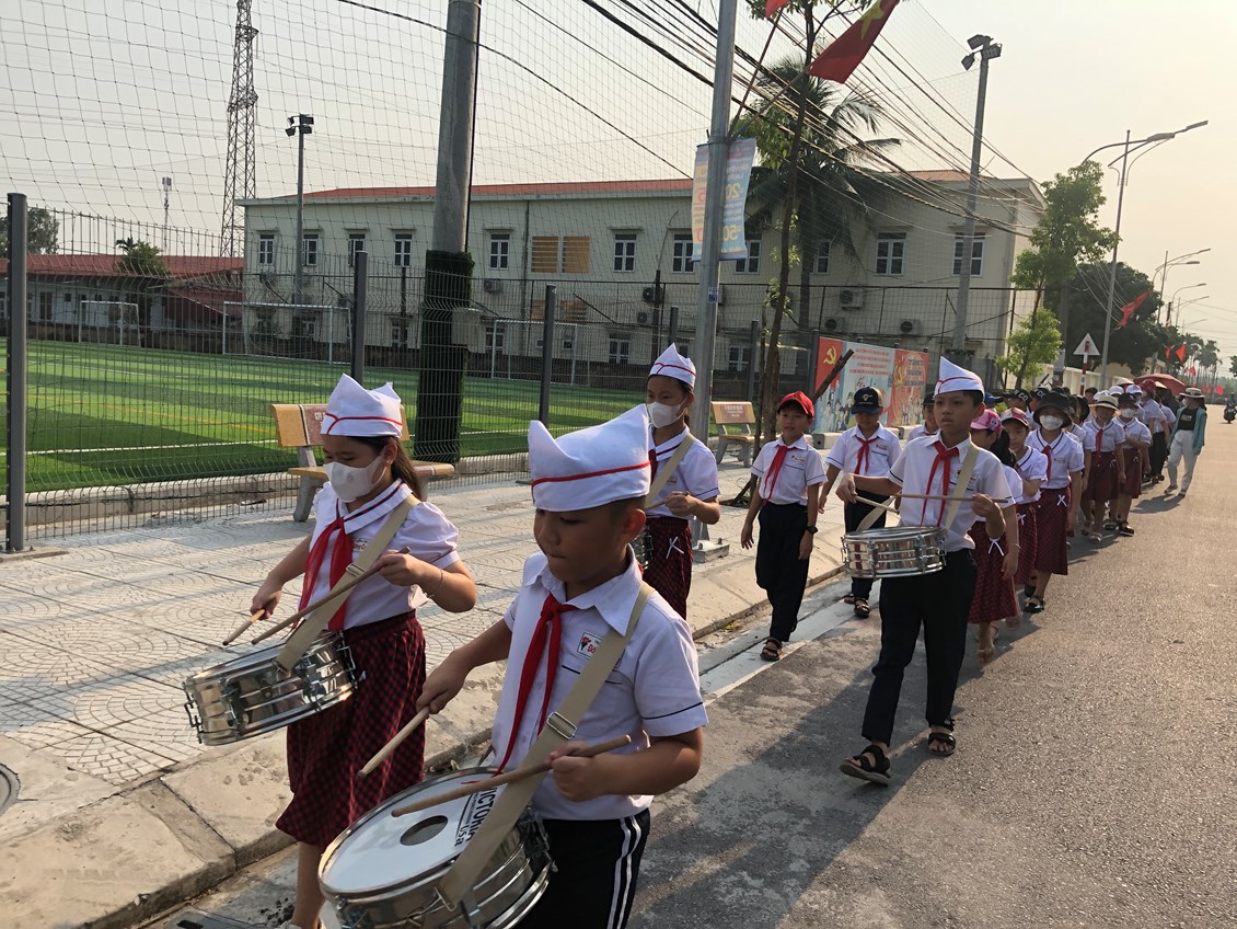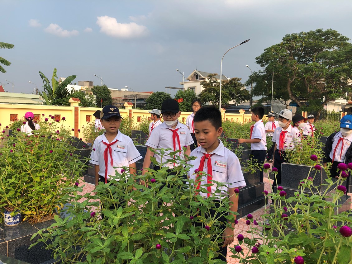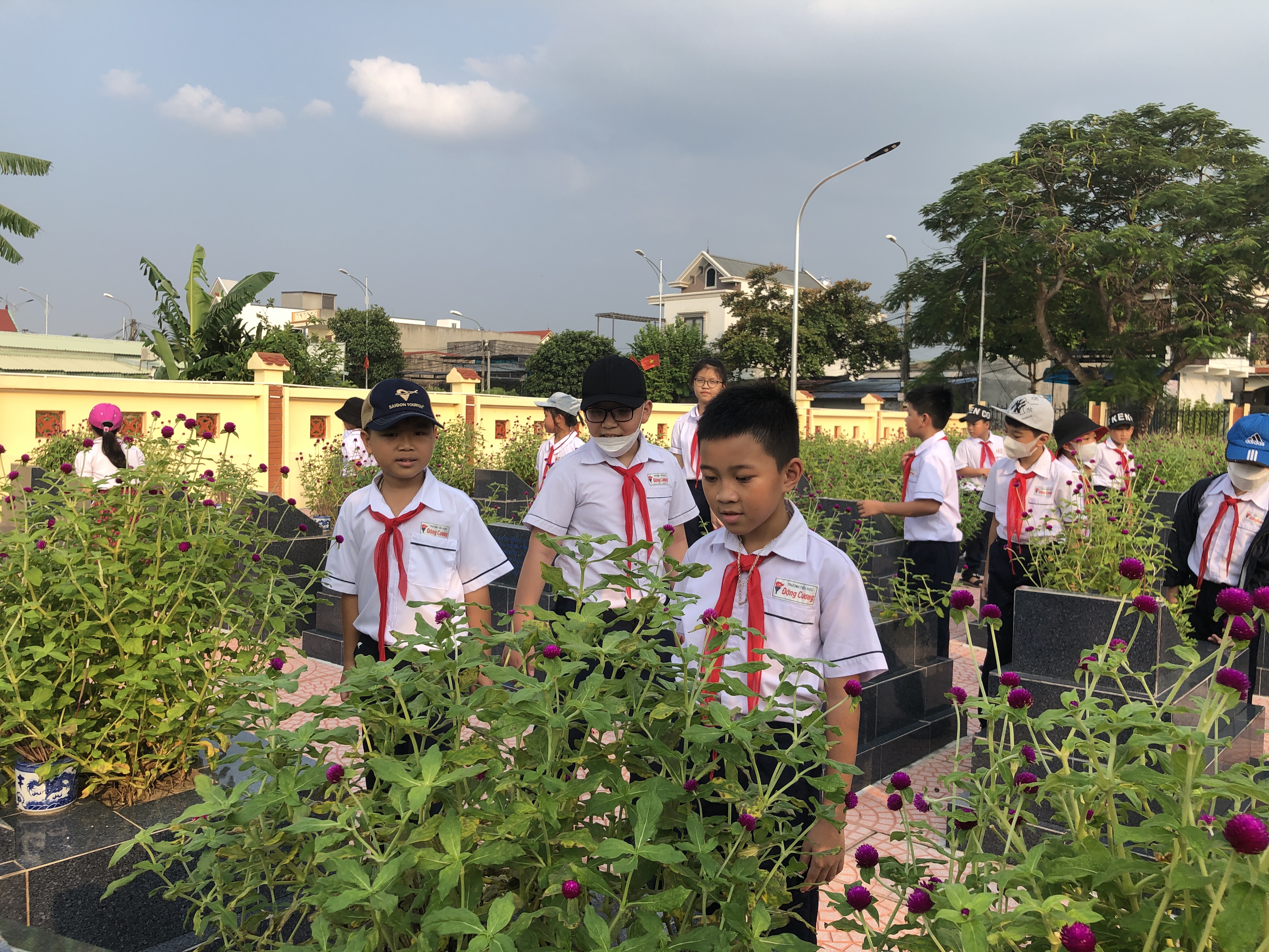 Dẫn đầu đoàn lễ viếng là cô giáo Bùi Thị Hải Yến - Bí thư chi bộ - Hiệu trưởng nhà trường. Cùng các thầy giáo, cô cô giáo đại diện các ban ngành đoàn thể trong nhà trường và các em Đội viên tiêu biểu của Liên đội tham gia hoạt động.