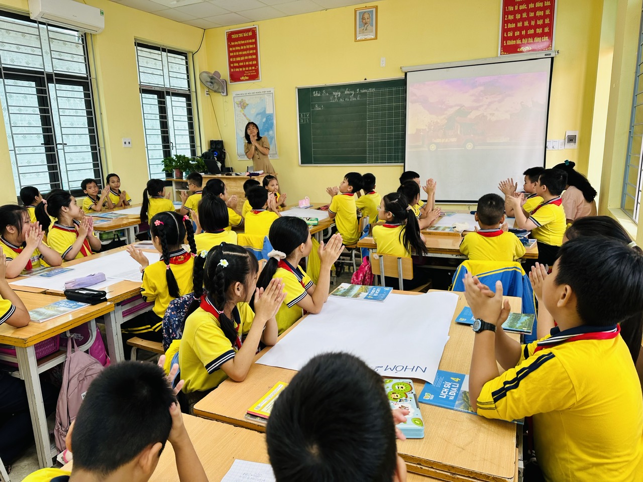 Thực hiện kế hoạch chuyên môn Tháng 9, năm học 2024-2025, sáng ngày 23/09/2024, Tổ chuyên môn Khối 4 cùng đồng chí Nguyễn Thị Thuý – Giáo viên giảng dạy Lớp 4E đã tổ chức thành công chuyên đề “ Tích hợp liên môn dạy học nội dung “ Địa phương em” trong môn Lịch sử & Địa lí lớp 4”, qua bài “Bài 3: LỊCH SỬ VÀ VĂN HÓA TRUYỀN THỐNG ĐỊA PHƯƠNG EM (T2)”