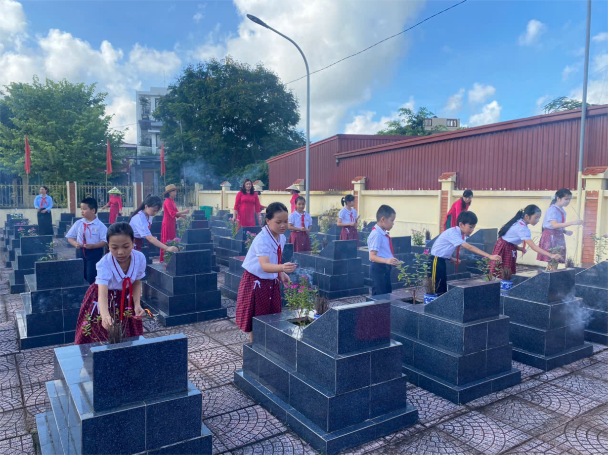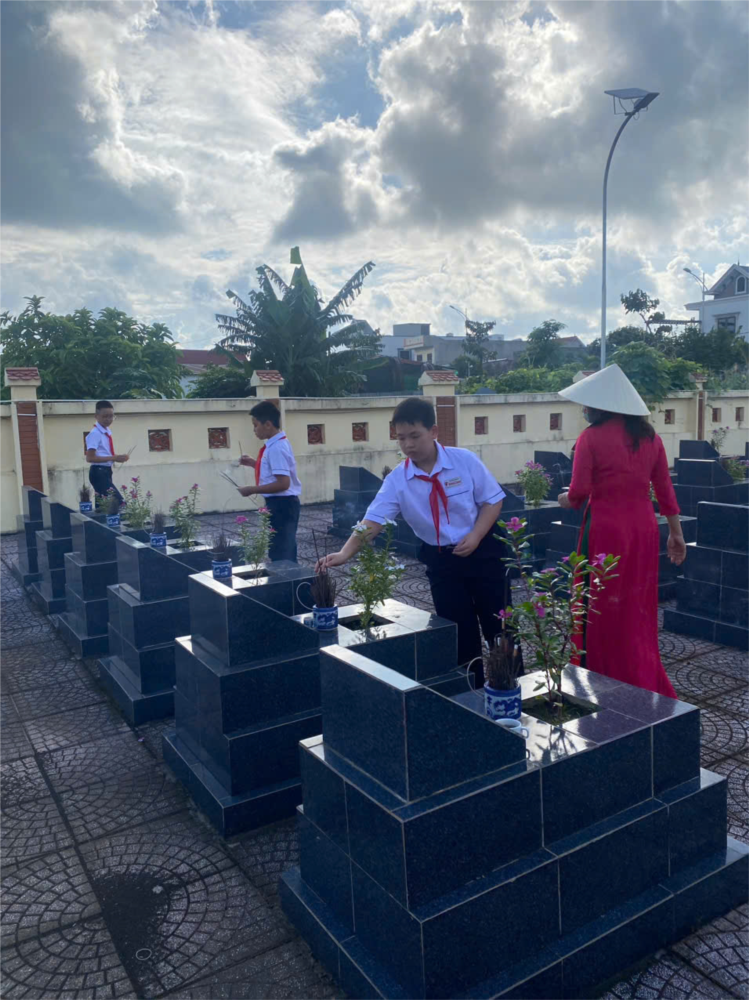 Thăm viếng, chăm sóc Nghĩa trang liệt sĩ xã Đặng Cương năm học 2022-2023