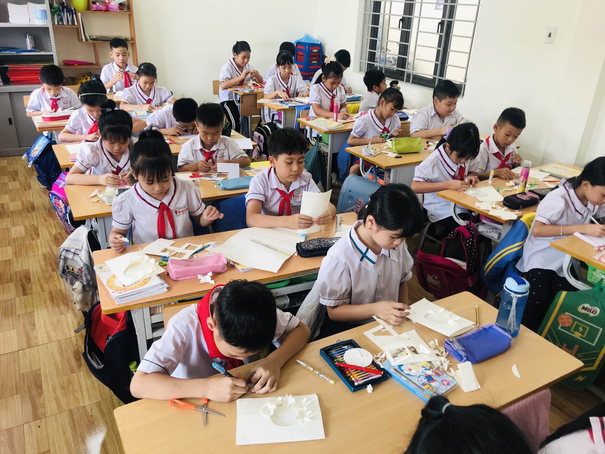 Mỗi lớp tự thiết kế và làm thiệp kính tặng thầy cô (có lời chúc, sử dụng chất liệu tự chọn). Thiệp chúc mừng do các em học sinh tự tay làm, tự sắp xếp ý tưởng với những nội dung đa dạng, hình ảnh phong phú. Các tấm thiệp đẹp sẽ được trưng bày, triển lãm toàn trường trong chương trình kỷ niệm Ngày Nhà giáo Việt Nam 20/11. Đó cũng chính là những tình cảm và sự tri ân của các em học sinh đến các thầy cô nhân ngày 20/11.