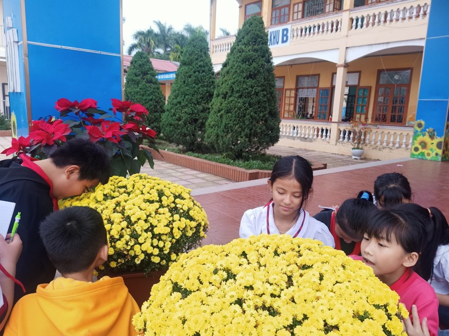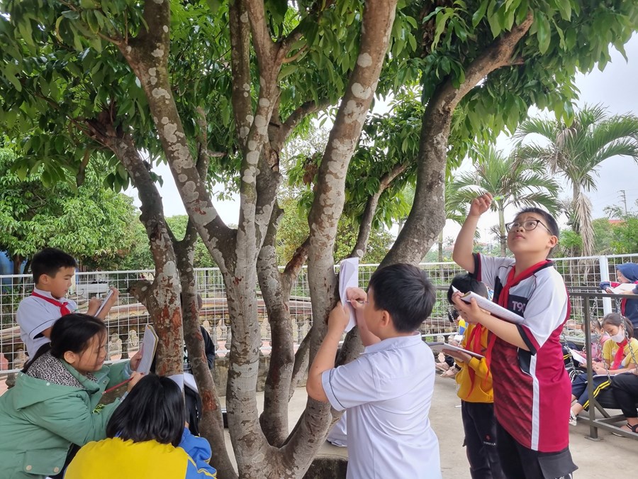 Được ra khỏi không gian lớp học, các em vui như “ chim sổ lồng “ nhưng vẫn trật tự xếp hàng, lắng nghe cô giáo hướng dẫn quan sát. Các em thực sự say sưa quan sát, ghi chép cẩn thận, thỉnh thoảng lại reo lên thích thú khi thấy vài chú ong, cô bướm đang bay lượn. Những tiết học từ trải nghiệm thực tế chắc chắn sẽ là những bài học ghi dấu ân sâu đậm trong tâm trí mỗi học trò!