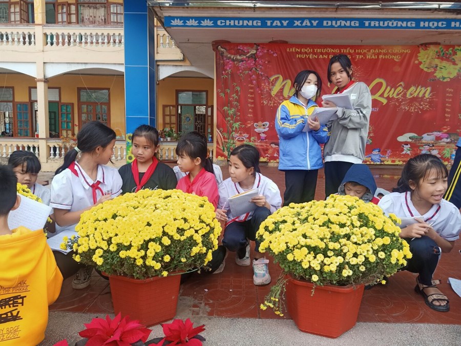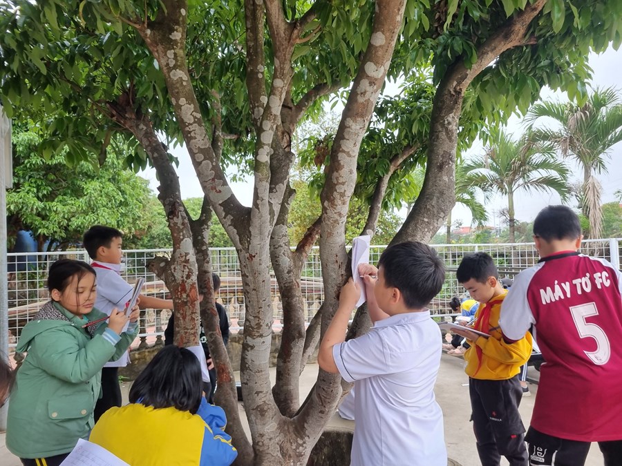 Trong làn gió xuân mát mẻ, các bạn học sinh lớp 4B Trường Tiểu học Đặng Cương đều rất vui tươi, hào hứng, tích cực tham gia trò chơi kết bạn để chia nhóm học tập, tự quan sát – hoàn thành phiếu nhiệm vụ được giao, sau đó tập hợp và chia sẻ cùng nhau những điều đã quan sát được.Trước khi ra ngoài sân trường để quan sát cây cối, các em được hệ thống lại về cách làm một bài tập làm văn miêu tả cây cối. Cụ thể, về trình tự quan sát và miêu tả cây cối, những lưu ý về cách dùng từ đặt câu, cách sử dụng các biện pháp nghệ thuật phù hợp, cách lựa chọn các yếu tố ngoại cảnh để miêu tả, cách sử dụng nhiều giác quan để quan sát... Giáo viên lên phương án hỗ trợ học sinh theo nhóm hoặc cá nhân.( Để có thể hướng dẫn học sinh quan sát tốt nhất, giáo viên phải tìm hiểu trước về các loài cây định cho học sinh quan sát. Ví dụ :Tên cây, thuộc loại cây gì, hoa quả có vào mùa nào...) .